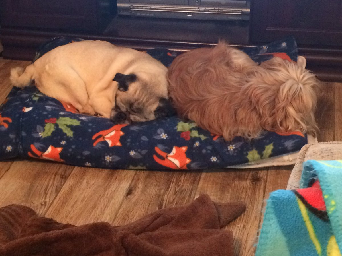 The 2 seniors sharing a bed...the tiles are pretty chilly tonight