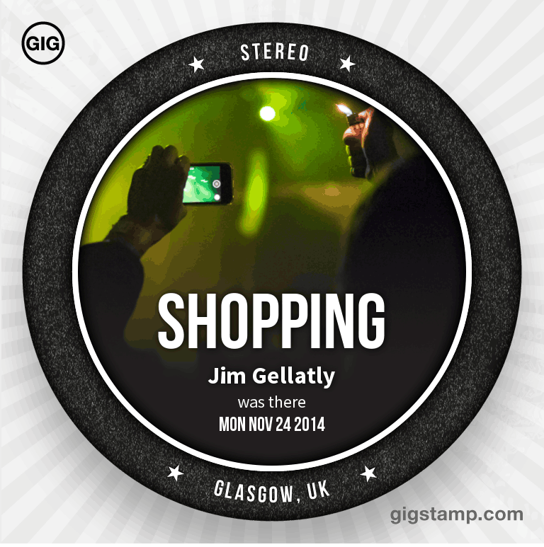 #gigstamp seeing Shopping at Stereo, Glasgow, UK#CC14 pic.twitter.com/yvkTqRGoAp