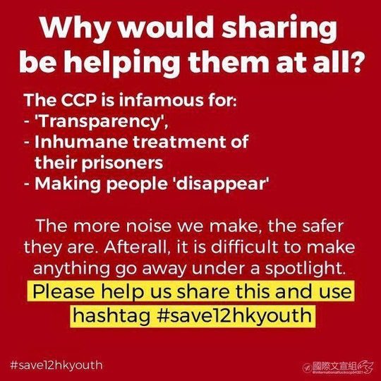 #CCP leaked they may be sentenced for entire life. Please help#save12hkyouth https://petitions.whitehouse.gov/petition/we-demand-release-12-hong-kong-protesters-under-chinese-custody …https://twitter.com/Kahinglkh/status/1302229745438920705 …