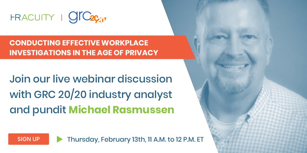 @GRCPundit and our CEO@debmullerhr will discuss changing privacy regulations, such as#CCPA and#GDPR, and their impact on investigations.