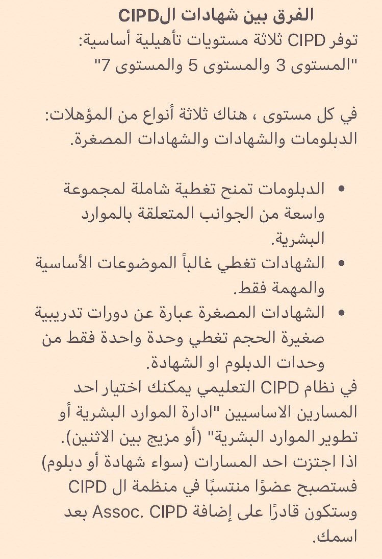 #CIPD لها ثلاث مستويات مبتدى (مستوى الثالث) متوسط (مستوى الخامس) محترف (مستوى السابع) . ولكل مستوى ثلاث مخرجات دبلوم ( المخرج الأعلى والاقصى استفادة) شهادة ( مخرج متوسط) شهادة مصغرة (المخرج عبارة عن نبذة بسيطة ) pic.twitter.com/MbF16RXGtM