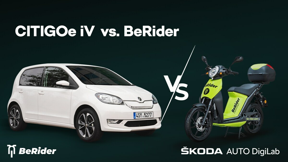@BeRiderCom scooters in the streets of#Prague and pit its strength against agile#SKODA#CITIGOeiV electric car. What would you choose for the way downtown? Watch the video and let us know.