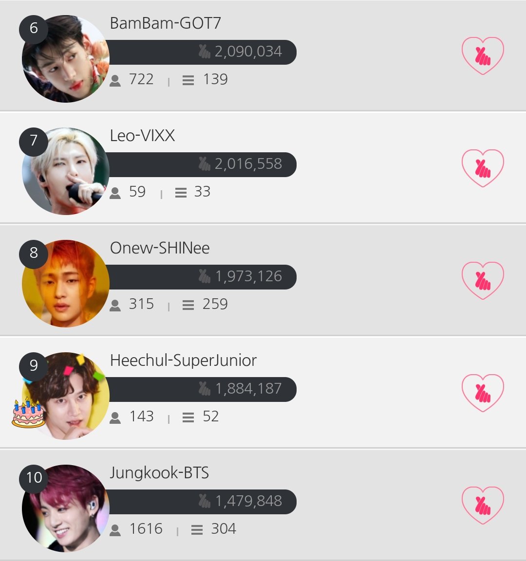 7.#LEO-#VIXX 8.#Onew-#SHINee 9.#Heechul 10.#Jungkook-#BTSpic.twitter.com/zsAHYJi9k4