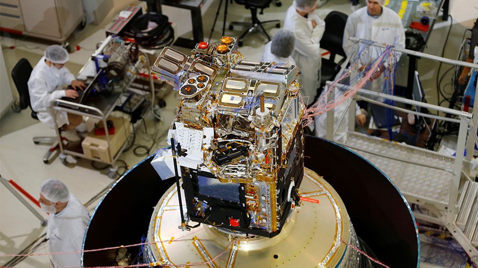 #Taranis, diseñado para observar fenómenos luminosos, radiactivos y electromagnéticos que se producen en altitudes de 20 a 100 km sobre tormentas eléctricas, se pudo ver durante una presentación a los medios en la#CNES en#Toulouse,#Francia.pic.twitter.com/l5l4r0CPgd