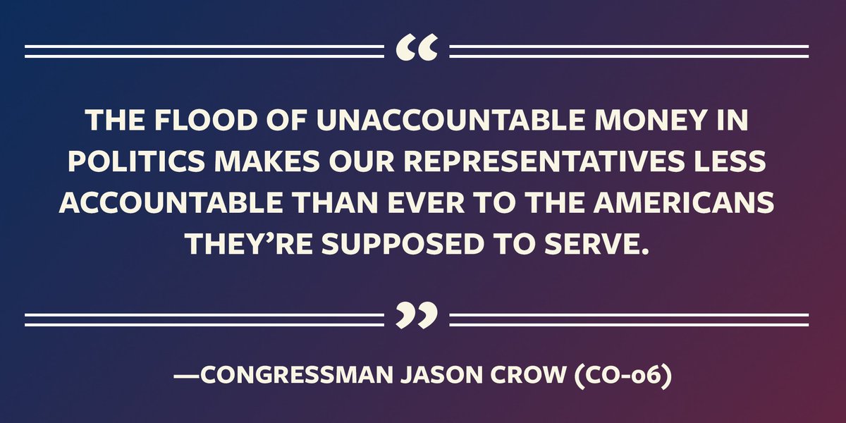 #CO06,@JasonCrowCO6 is committed to ending the flow of dark, untraceable money in our elections. He backs#HR1.#ForThePeoplepic.twitter.com/AK4P7gkKHP