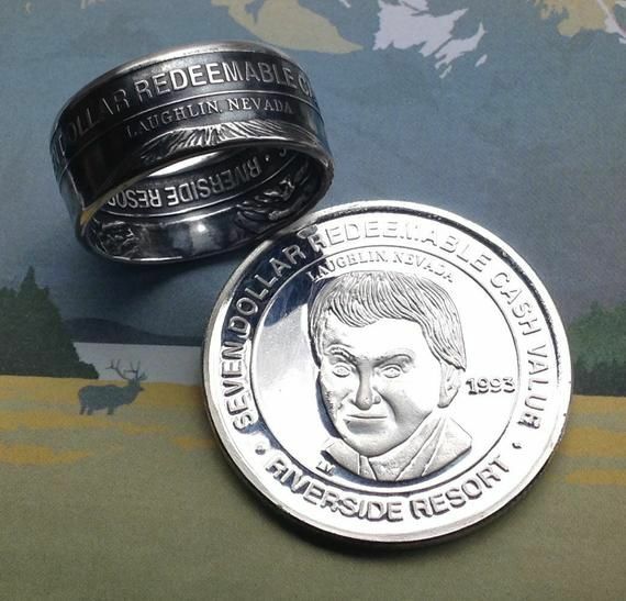 1993 Riverside Casino 7 Dollar Token, Pure Silver Coin Ring