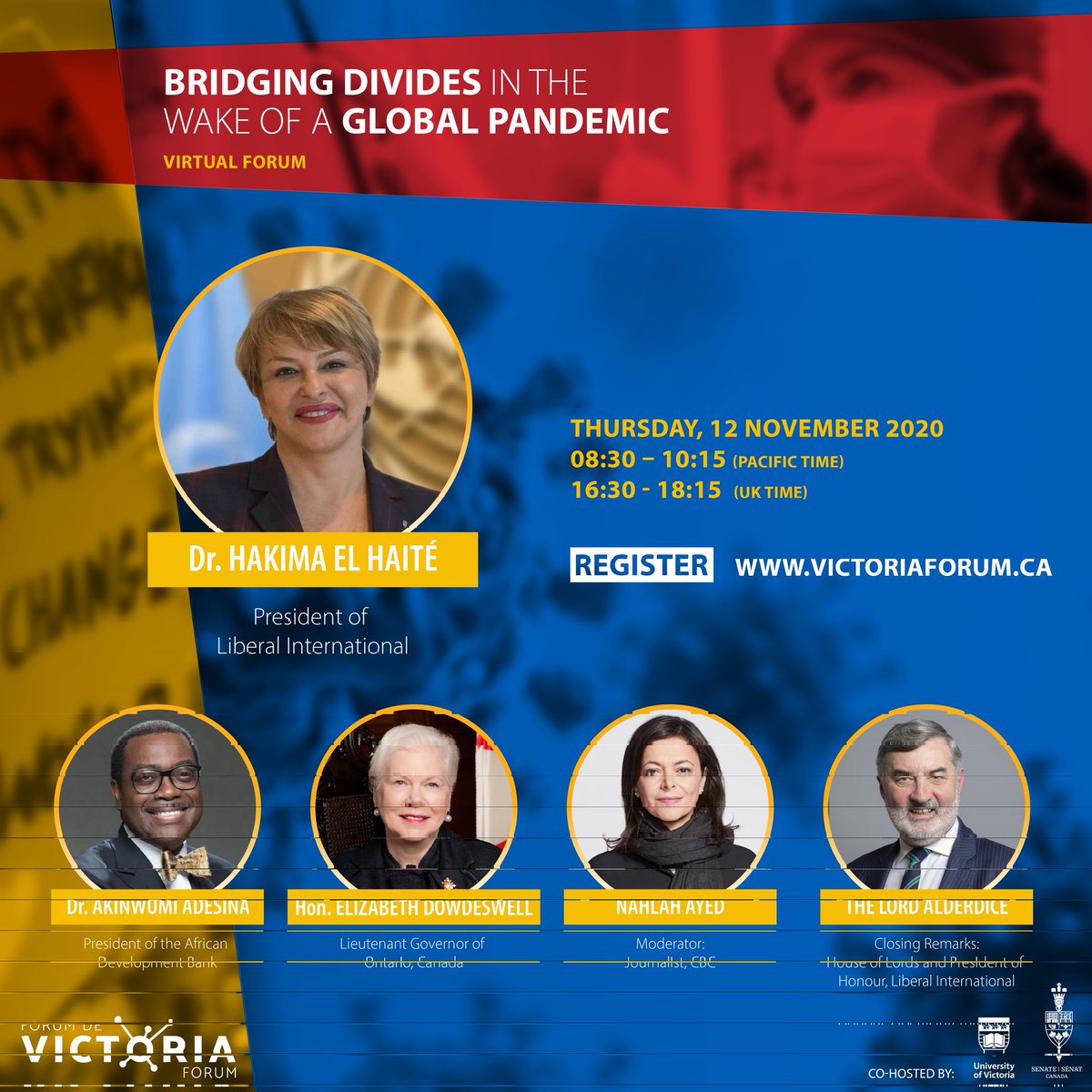 @HakimaElHaite launch the 2020@Victoria_Forum on 'Bridging Divides'. She'll share her rich perspective as former