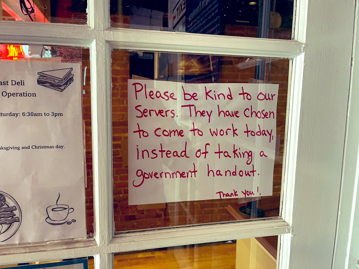 Yup!! Absolutely. “Please be kind to our waitresses. They have chosen to come to work today instead of taking a government handout.”