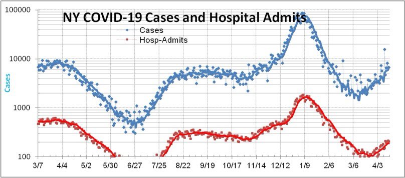 #COVID19 are rising exponentially again in Florida and New York. Meanwhile, NJ COVID hospitals admissions is second largest by number, while VT largest by percentage. Florida