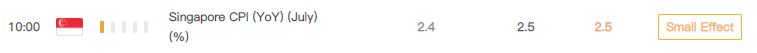 Singapore July CPI (YoY): 2.5%, consensus 2.5%, previous 2.4%.