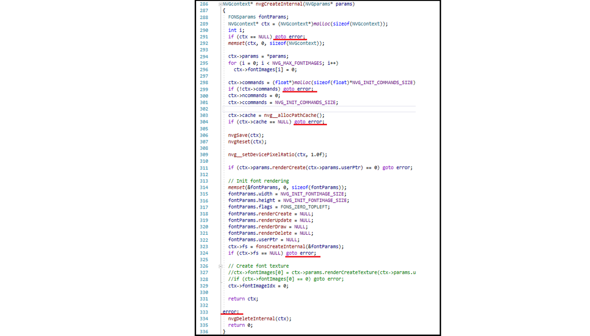 There are GOTO statements in the Nanovg library. Haven't seen these in years.