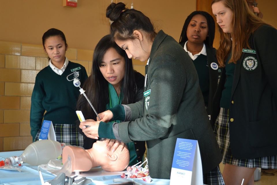 Yesterday, a group of our CRNA’s went to visit Catholic High to talk to over 60 Biomedical students! They were able learn about what it takes to become a CRNA, and also had the opportunity to explore six different hands-on exercises!