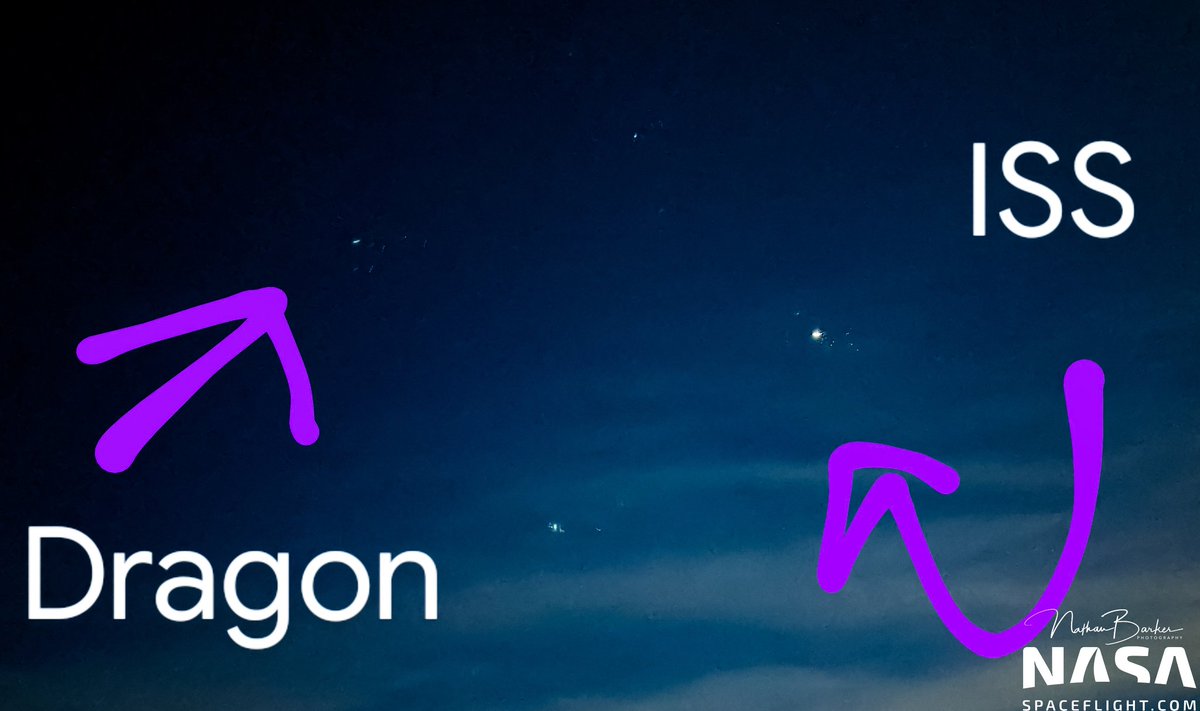 A cargo resupply vehicle chases the International Space Station this evening over eastern Pennsylvania.