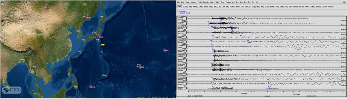 #CTBTO International Data Centre analysis of signals from 41 primary seismic, 22 auxiliary seismic, 4 hydroacoustic, 1 infrasound#IMS stations recorded an event (#IDC mb = 6.0), located South of Honshu, Japan on 29 November 2021 at 12:40 UTC.pic.twitter.com/3But4arQHP