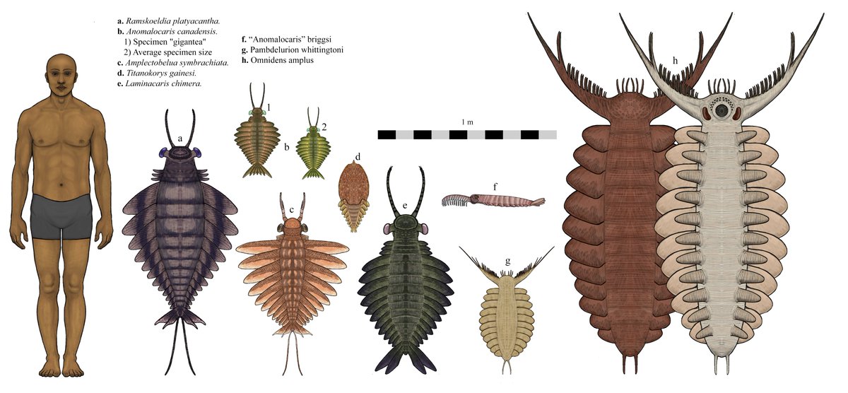 #cambrian radiodonts and gilled lobopodians , the first megafauna animals on earth, this from a future revision of my original cambrian size chart. pic.twitter.com/eaBvzHyRDE