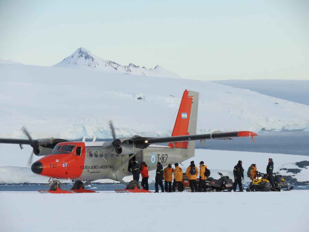 #CampañaAntártica | Comenzaron las tareas de repliegue de parte del grupo de trabajo de Base Esperanza. En un total de 3 vuelos, fueron trasladados a Base Marambio en un avión Twin Otter. El repliegue final al continente se realizará con el avión Hércules de la@FuerzaAerea_Argpic.twitter.com/Vfkm4fCblG