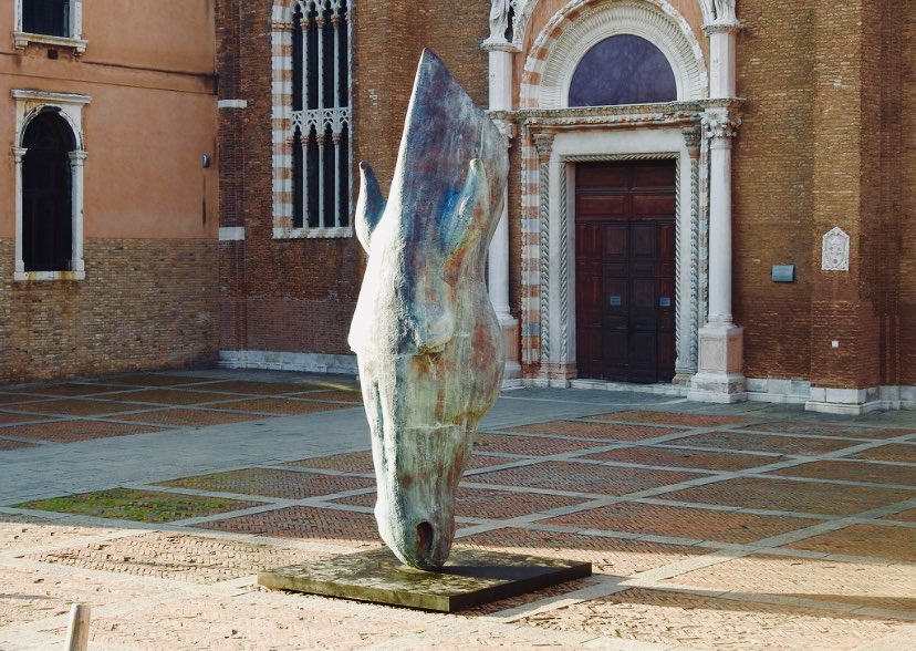 One of the sculptures on display outside the Church of Madonna dell’Orto by