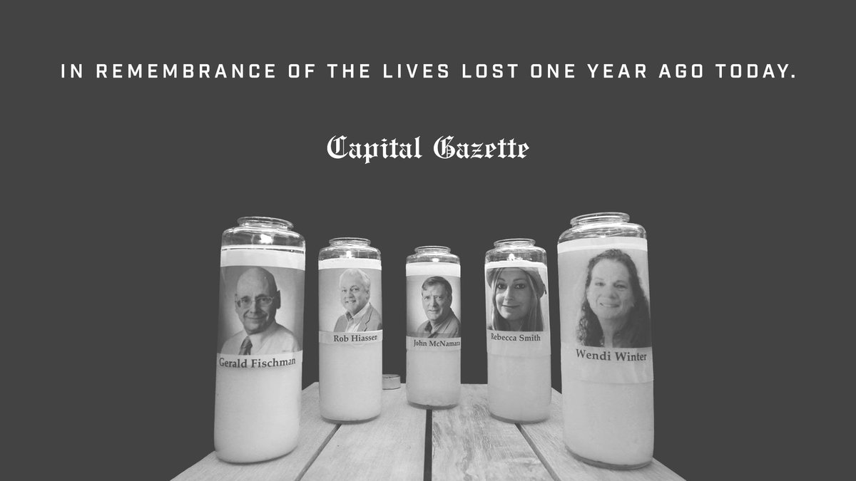 Today we remember the five Capital Gazette employees who lost their lives a year ago today.