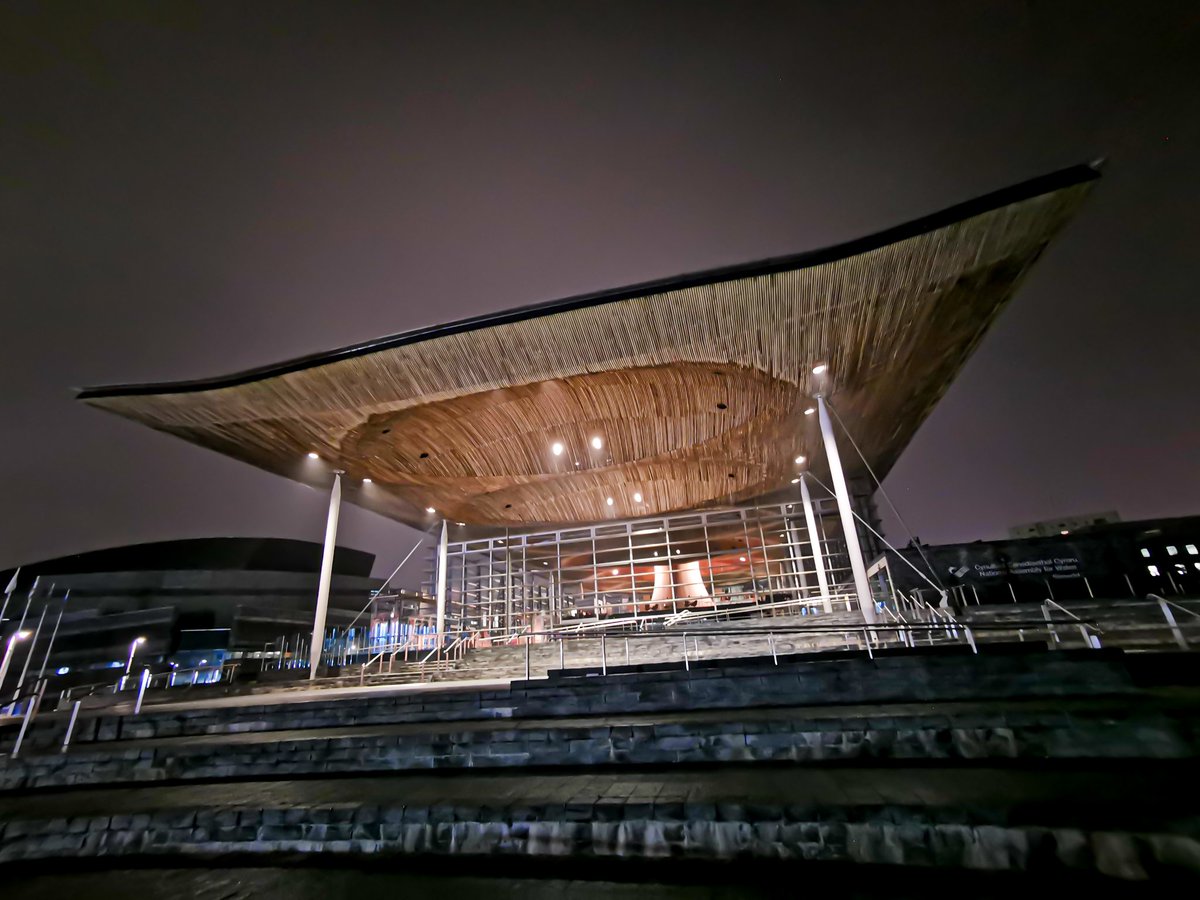 @AssemblyWales HQ at Cardiff Bay at night#CardiffBay pic.twitter.com/wVtEISDmjZ
