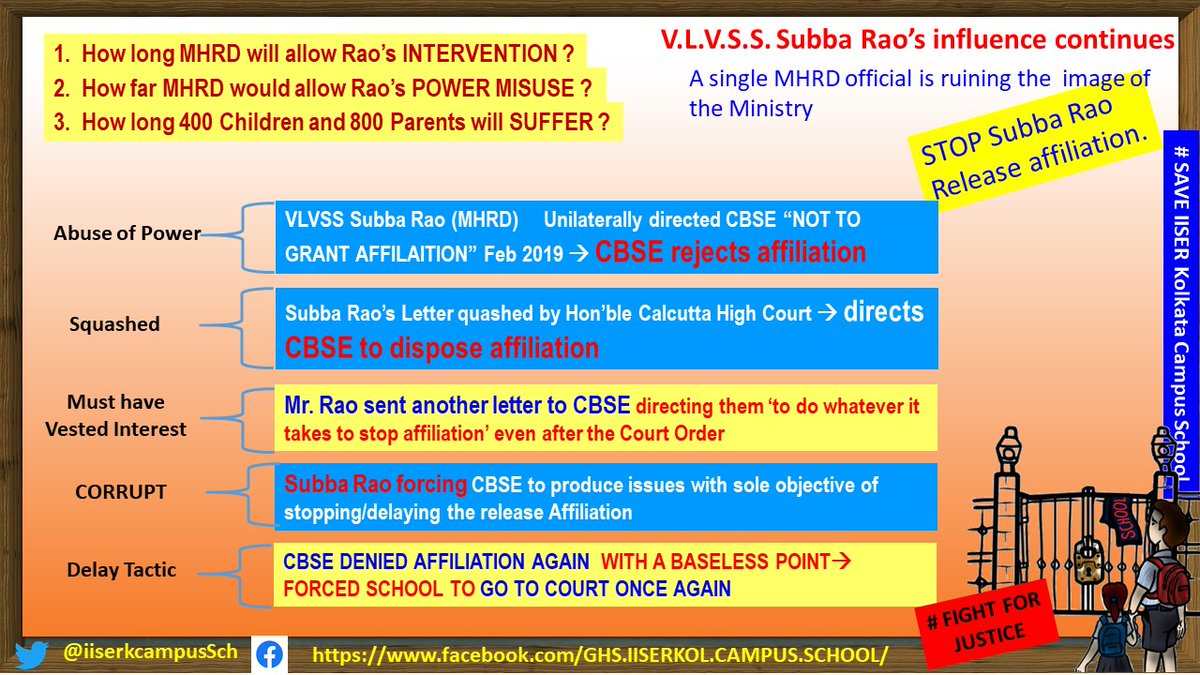 @narendramodi Ji ,@DrRPNishank Ji,@PMOIndia ,@OfficeOfSDhotre#save400children Is Anyone listening?How long#MHRD will stay silent? Release#CBSE affiliation#IISER KOLKATA CAMPUS SCHOOL.Stop#closureofschool Supersede Subba Rao’s interference. He defamed#MHRD and education.pic.twitter.com/xo43HGIEXk