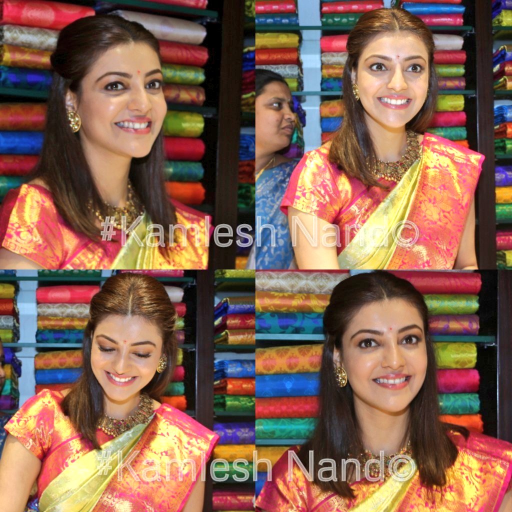tollywood actress #kajalaggarwal snapped at#mangalyashoppingmall opening today in Hyderabad#look so beautiful in#saree@MsKajalAggarwal#celebrity#actresslifepic.twitter.com/5BjbQ7O7qF