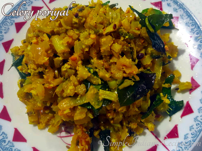 Celery Poriyal (Stir-Fry): Celery, a leafy vegetable usually consumed raw & sometimes added to a dish to enhance the flavor & taste. I have used