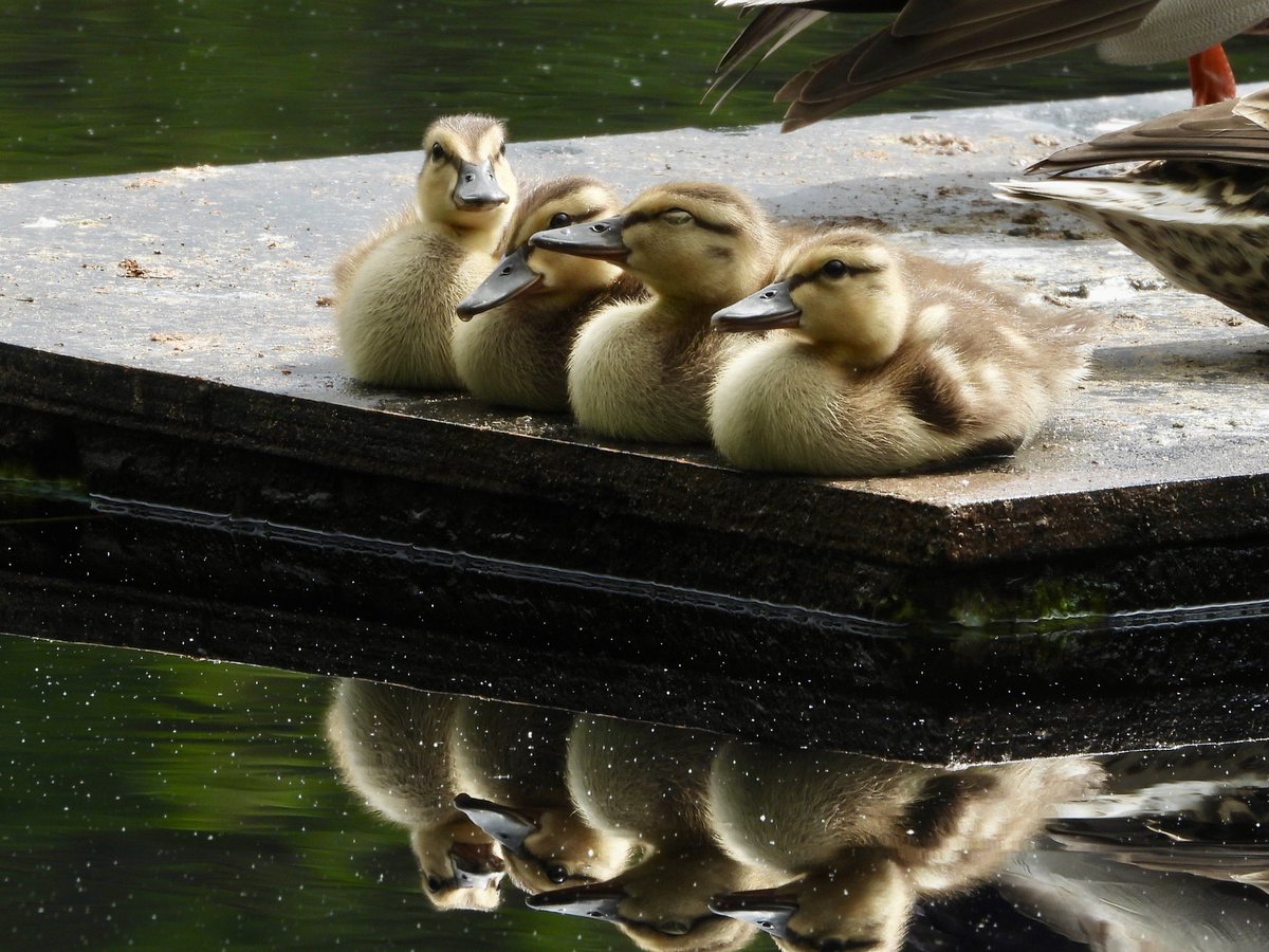 Mallard Ducklings with Mom& Dad Conservatory Water