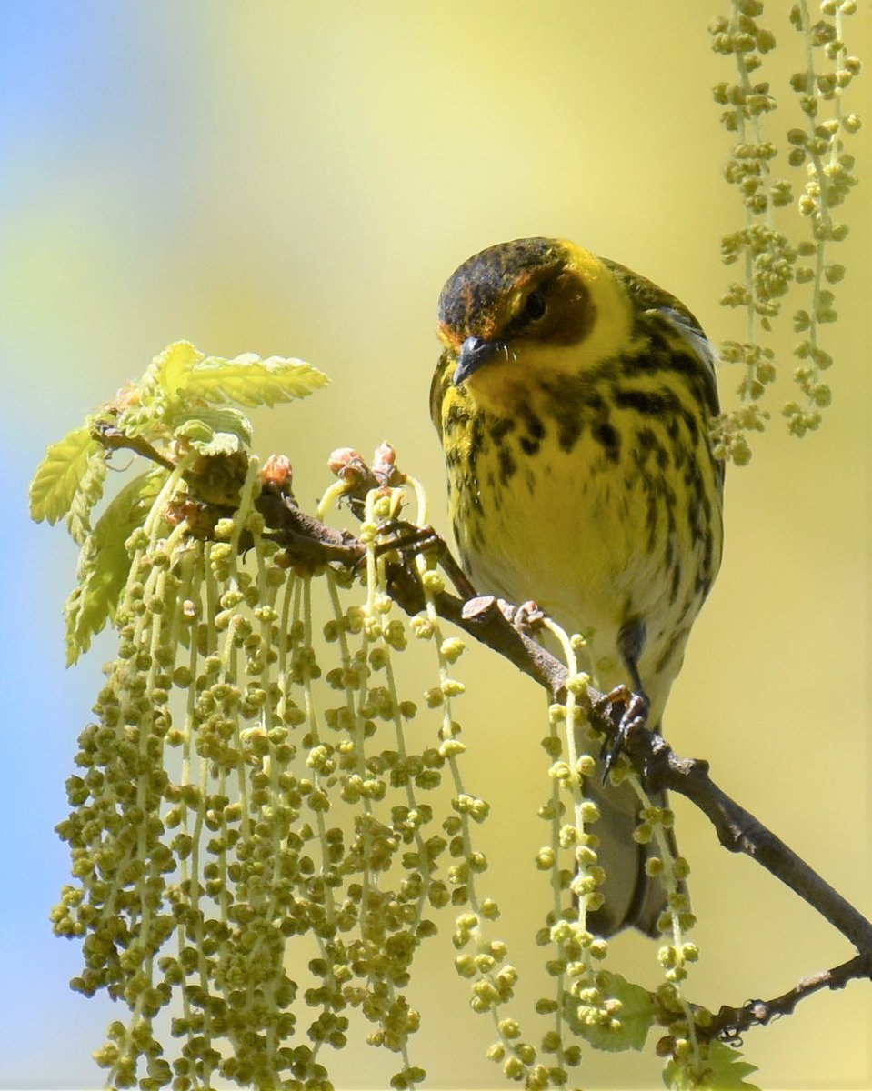 Catkin Connoisseur Cape May Warbler dines on high. Central Park, Monday, May 9.