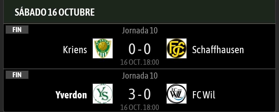 #ChallengeLeague terminó ayer la jornada con los últimos partidos de equipos de la zona baja de la tabla. El colista Kriens ha conseguido su segundo empate consecutivo contra el Schaffhausen. Mientras que el Yverdon ganó goleando ante el Will y lo adelanta en la clasificación pic.twitter.com/0attaNHVMl