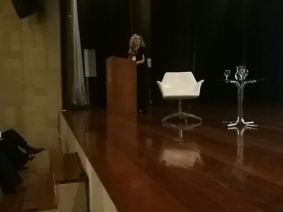 Carina Almeida começa sua apresentação sobre o revezamento da