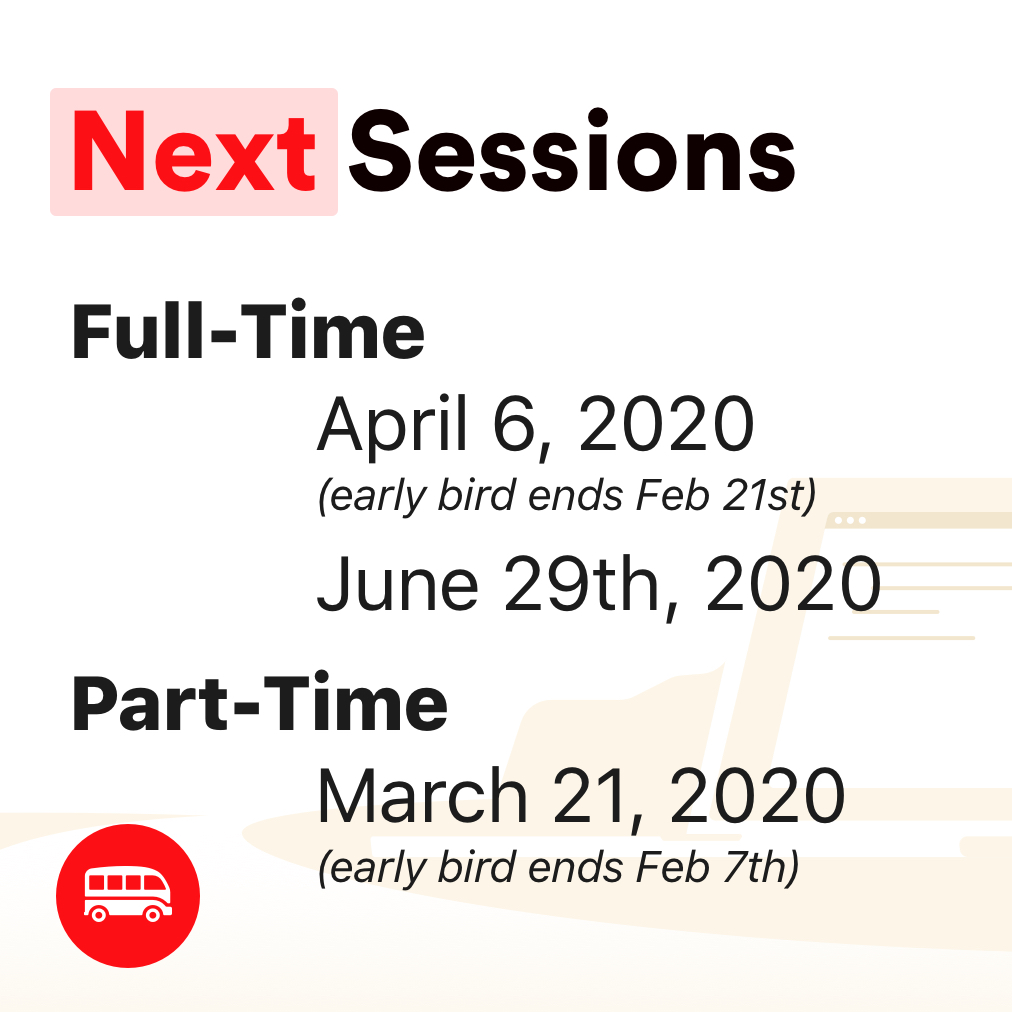 Early Bird discount ends soon for our upcoming Spring 2020 sessions - Enroll before Feb 7th (part-time) or Feb 21st (full-time) to benefit from it!