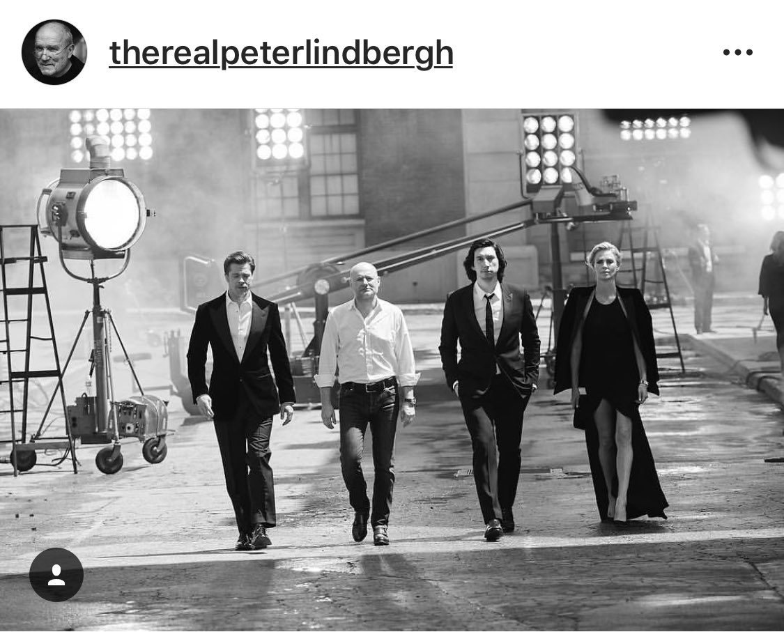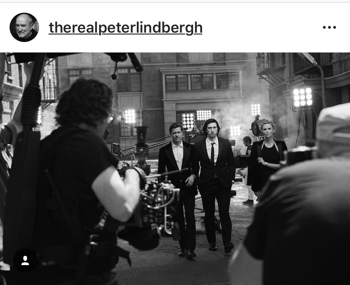 "Behind-the-scenes of a recent campaign shoot with Charlize Theron, Brad Pitt and Adam Driver"