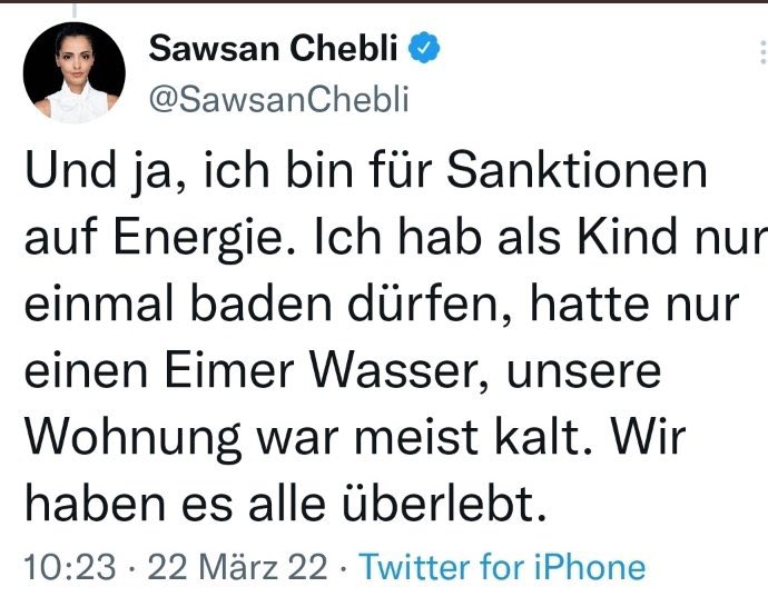 #Chebli hat als Kind nur einmal baden dürfen - und das war dann zu heiß. Phänomen geklärt.#Energieembargohttps://twitter.com/DanielPugge/status/1506974226061873156 …