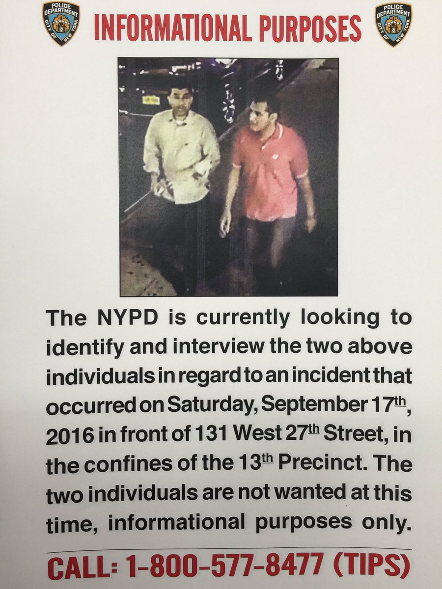 @NYPDnews &@NewYorkFBI are looking to speak to the two below witnesses following the bombing#ChelseaExplosion#nycpic.twitter.com/siSLyTWVAw