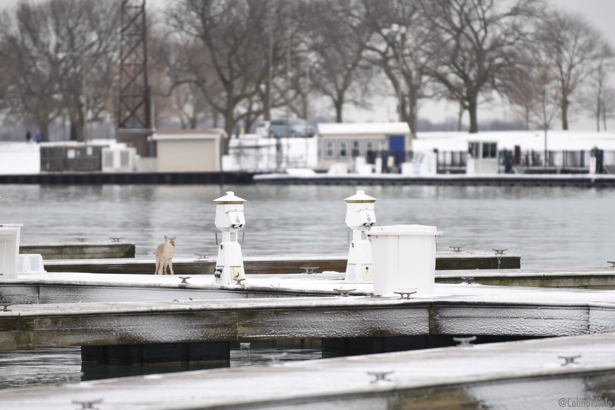 Another coyote spotted - this time on a dock at Belmont Harbor. I'm with a citizen who is on the phone with animal control now