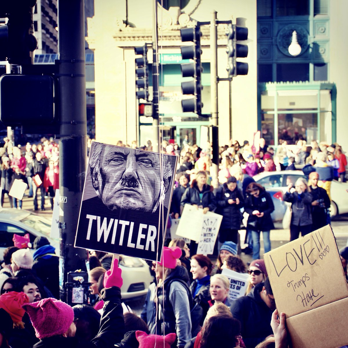 #chicagowomensmarch! Great job unnerving dumpy rumpy! He's so hurt he's threatening us! Pretty sure he's not truly worried about carnage ;) -