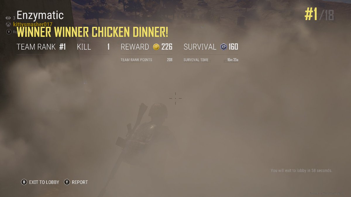I havent played Pubg(xbox) in about 2 months. Got on today with some of the boys and got this nice little dinner!! Was pretty happy with it. Lol.