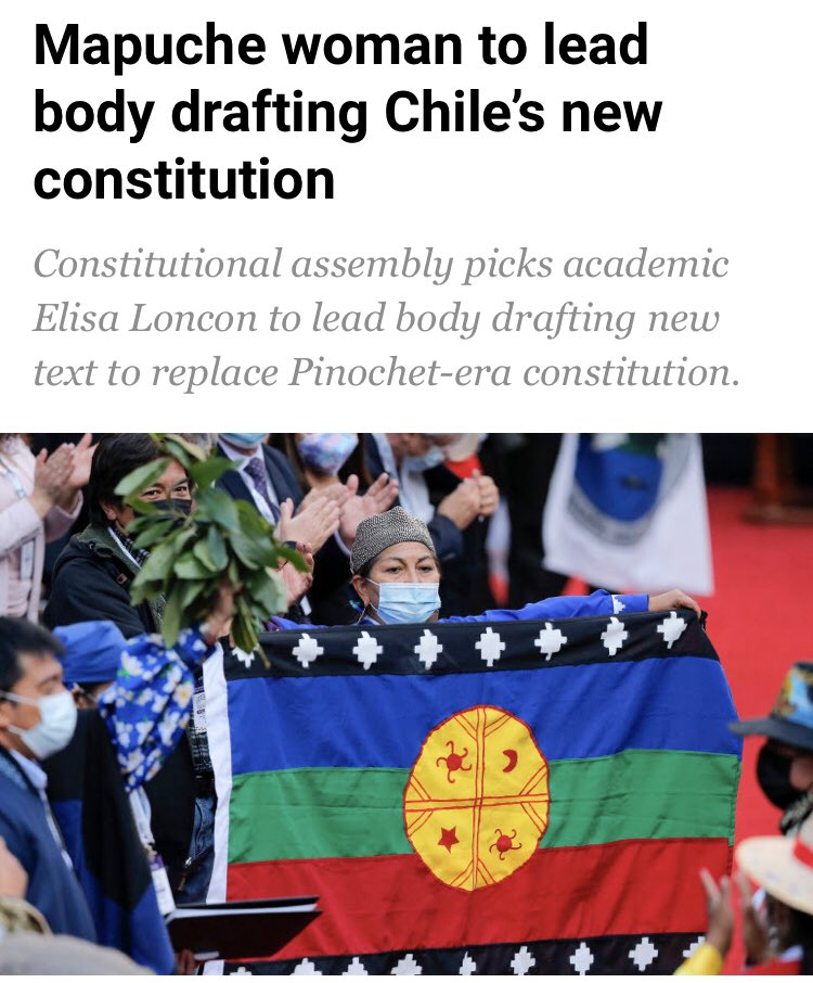 #Chile celebrates the election of indigenous#Mapuche representative Elisa Loncón as president of the country’s new constituent assembly. The body is tasked with rewriting the country’s constitution, which dates back to the fascist Pinochet era#chiledespierta pic.twitter.com/QF8ZguUfG6