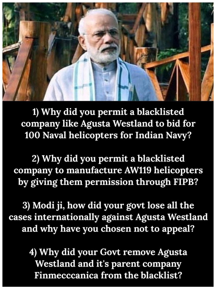 @narendramodi permit a blacklisted company - Agusta Westland to bid for 100 Naval helicopters for Indian Navy?#ChowkidarHiChorHai -