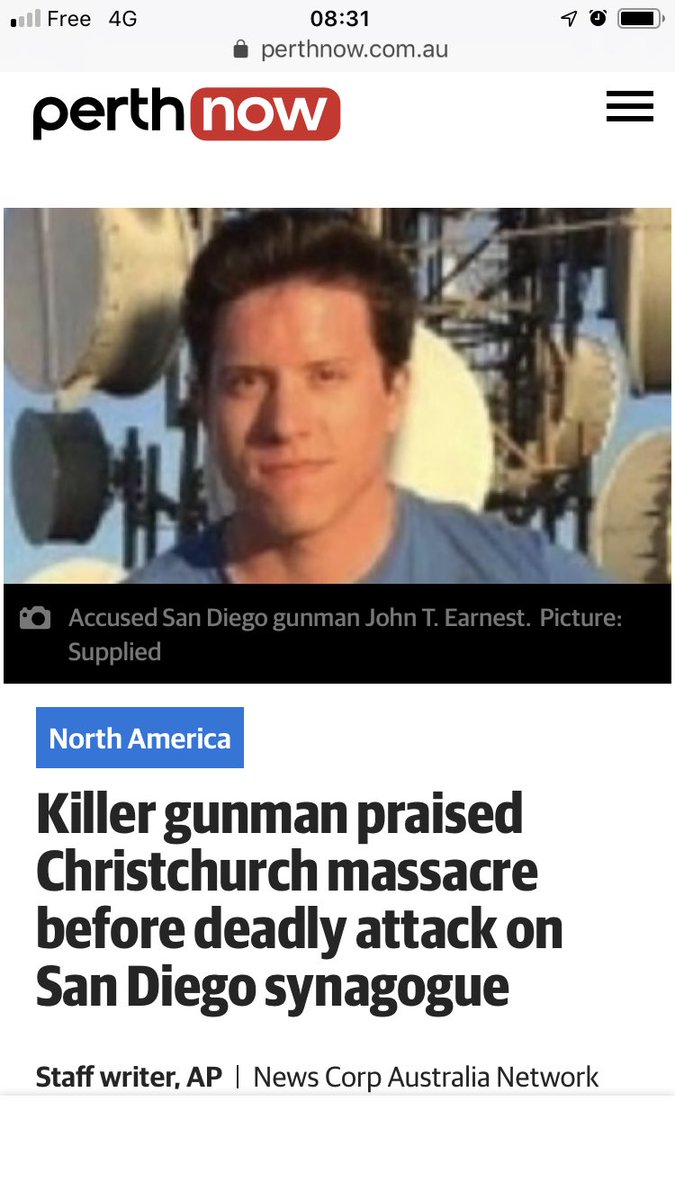 #Poway aux Etats-Unis, l’antisémitisme a tué. L’auteur présumé des faits avait annoncé sur Internet sa volonté de tuer des Juifs en s’inspirant de#Christchurch