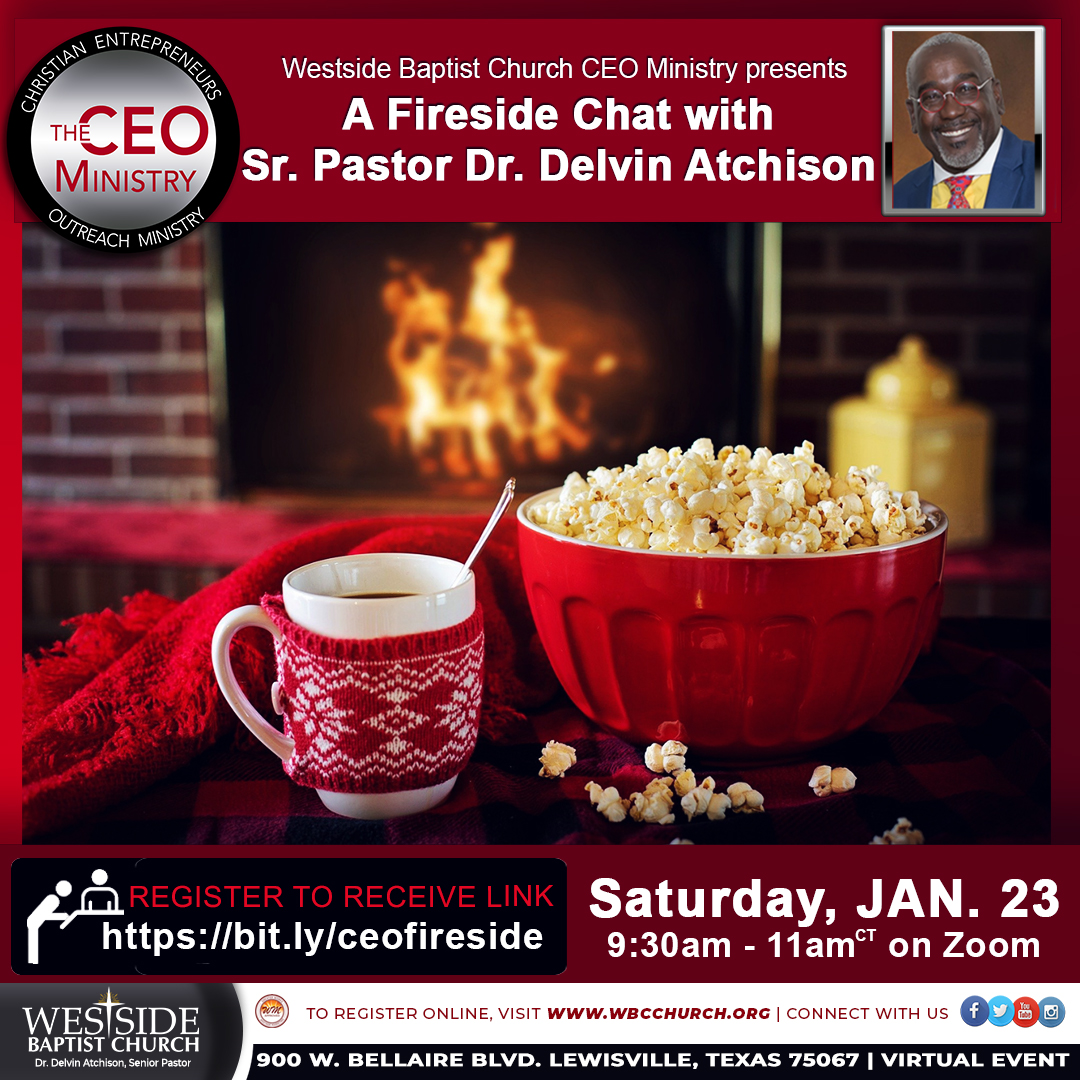 #Christian#Entrepreneurs Outreach) Ministry at@WestsideBCLewis presents “A Fireside Chat with Senior Pastor@delvinatch on Saturday, January 23, 2021 from 9:30am-11am. You must register to attend @ https://bit.ly/ceofireside . More info at https://wbcchurch.org/westside-ministry/in-reach-ministries/ceo-ministry/ ….pic.twitter.com/fVFKYrC4Z1
