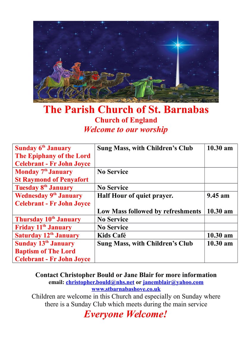 Sunday 6th January the celebrant & preacher will be Fr John Joyce.