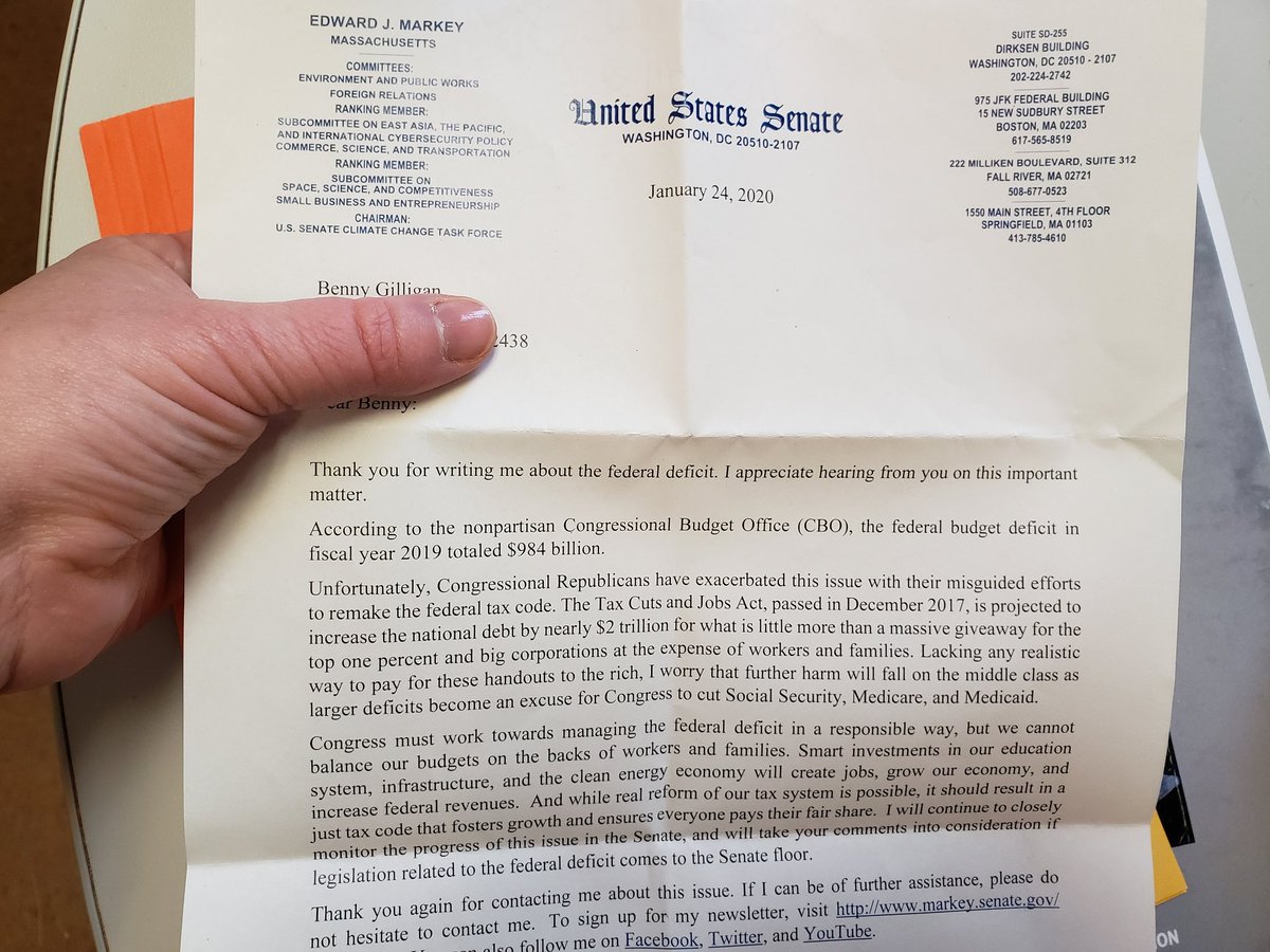@SenMarkey and staff for writing such a lovely, personalized response to one of our 10th graders who sent a letter expressing concerns about the federal deficit.#civics pic.twitter.com/z4yBsCxprK