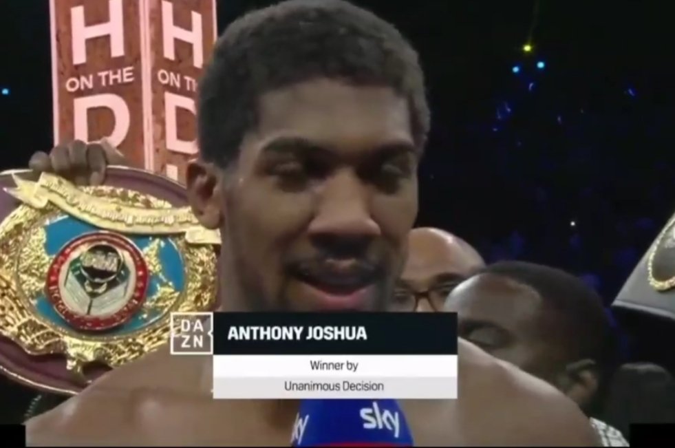 Anthony Joshua regains his titles with a unanimous decision victory over Andy Ruiz. Scores were 118-110, 118-110 and 119-109.