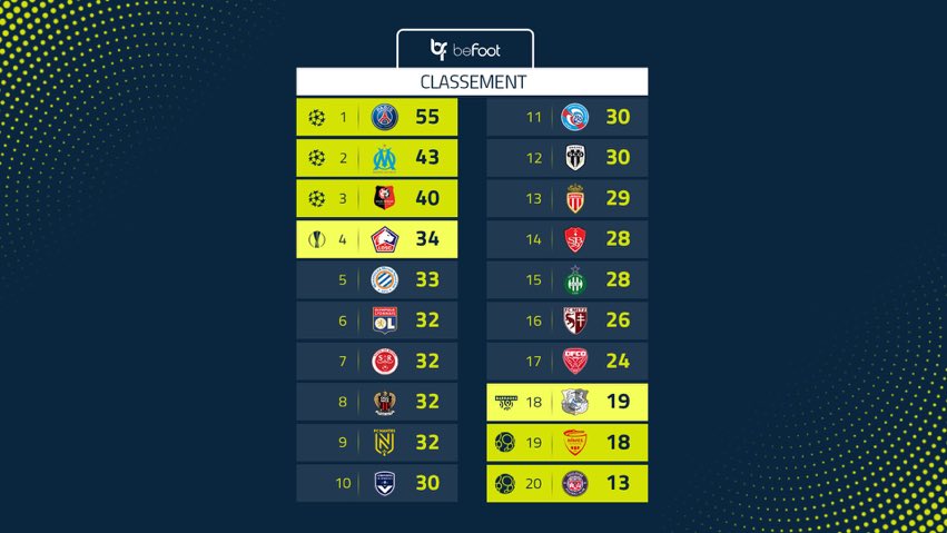 #Classement de#Ligue1 après cette 22ème journée