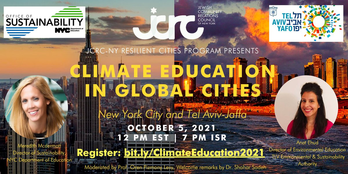 @JCRCNY#ResilientCities Presents:#ClimateEducation in Global Cities-- NYC & Tel Aviv-Jaffa RSVP:http://bit.ly/ClimateEducation2021 … Meredith Mcdermott, Director of Sustainability, NYC DOE + Anat Ehud, Director of Environmental Education, TLV Environmental & Sustainability Authoritypic.twitter.com/6QakO1aMqm