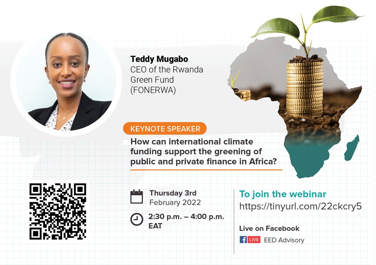 Speaking tomorrow on, 'How International Climate funding can support the greening of public and private finance in Africa' will be the CEO - Rwanda Green Fund, join the over 100 participants in this captivating webinar. Register today: https://lnkd.in/g-5EqgBJ