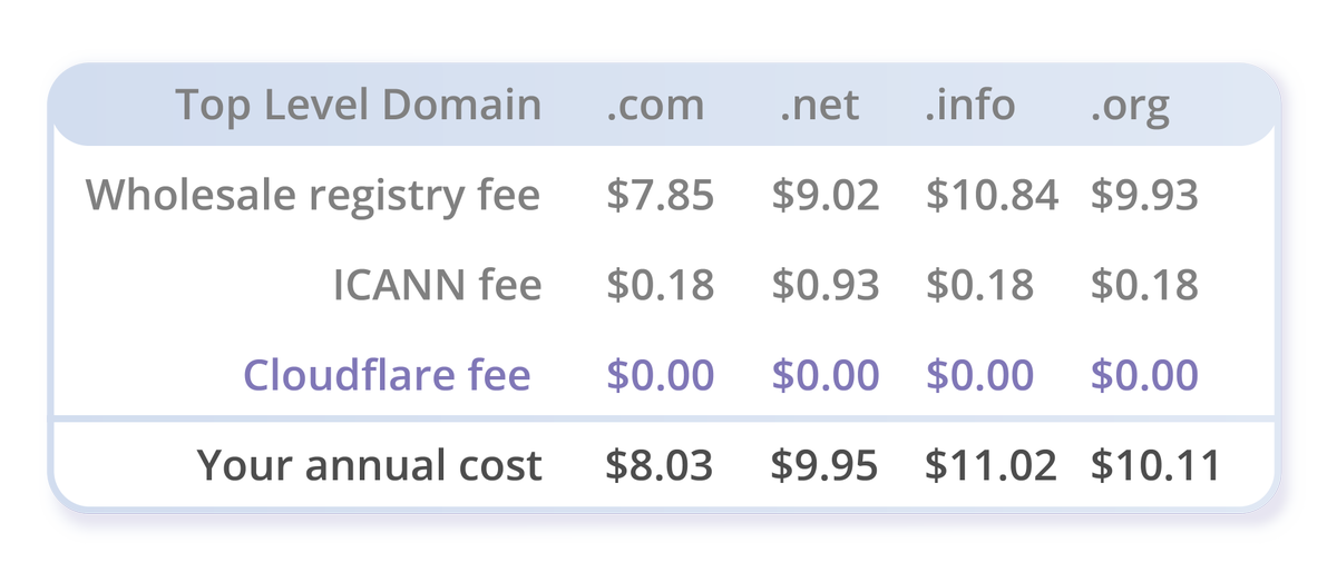 #CloudflareRegistrar offers wholesale pricing for all TLDs — you pay what we pay. No markup, no additional fees, no surprises. Learn more http://cloudflare.com/registrar pic.twitter.com/C0oM7rT5yu