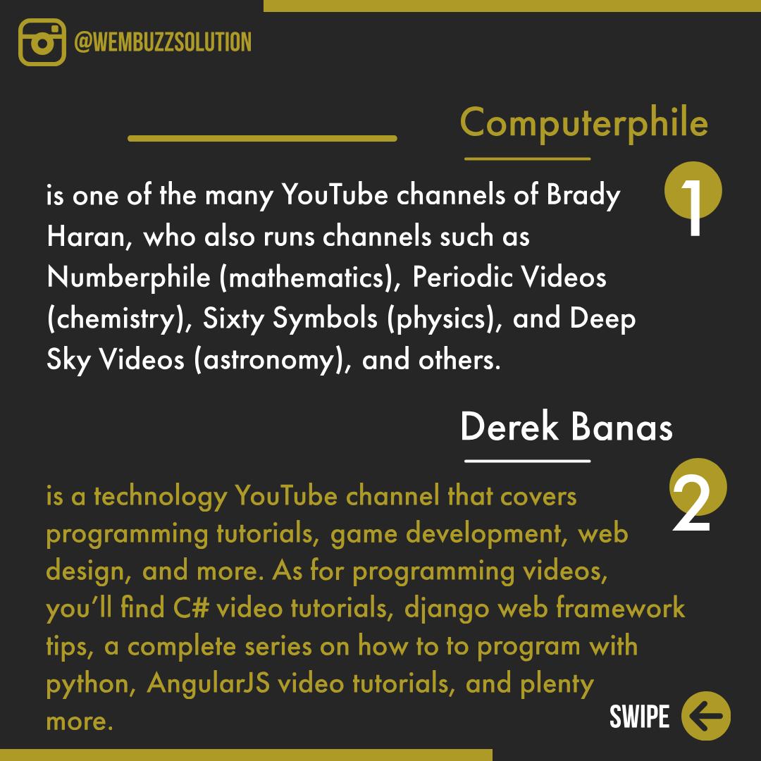 #Computerphile 2.#derekbanas 3.#hak5 4.#codecourse 5.#learncode.academy Comment your valuable feedback to our posts. Thank you... Follow:@wembuzz#android#web#development#softwareengineer#programmingmemes#programmers#bhfyp pic.twitter.com/hmT9WXqrQw