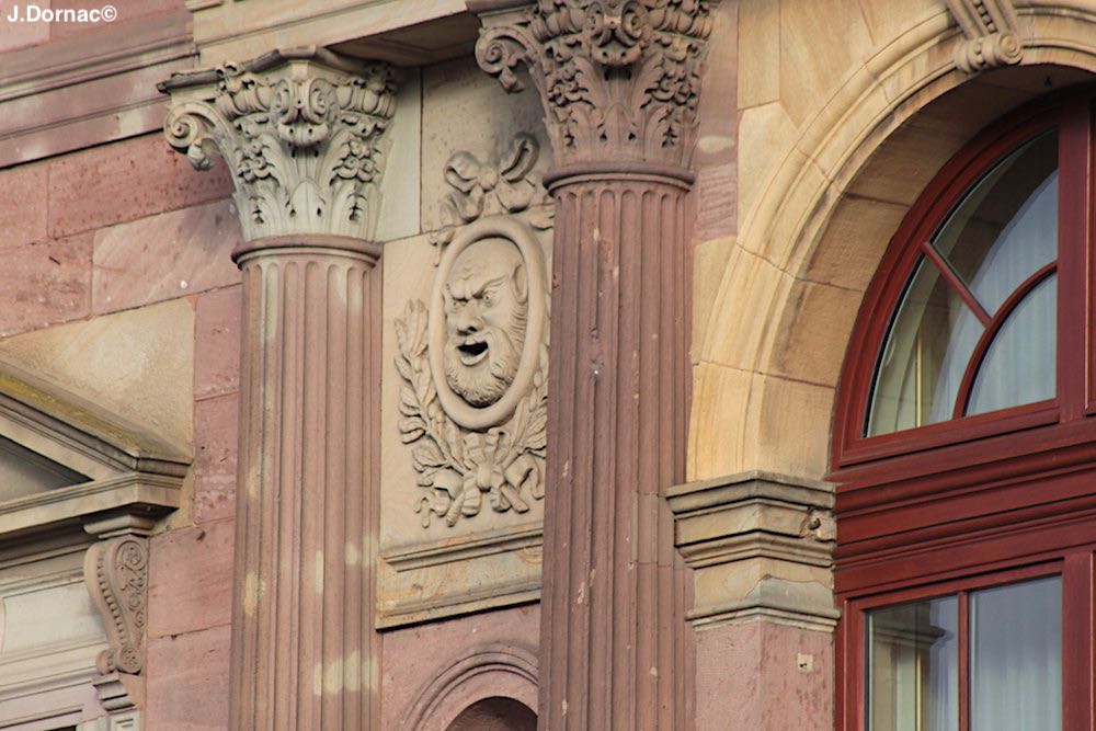 Détail sur la façade du musée Unterlinden, tout à côté du théâtre municipal…